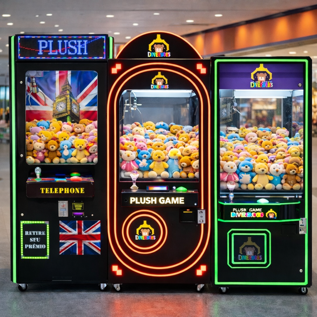 As máquinas de pelúcias — também conhecidas como gruas de pelúcias, máquinas de ursinhos ou máquinas de garra — são a escolha ideal para festas, eventos corporativos, comemorações particulares e pontos comerciais com grande fluxo de pessoas. Ao comprar sua própria máquina, você transforma qualquer espaço em uma atração permanente e lucrativa. Com sucesso comprovado no mercado de entretenimento, as máquinas de pelúcias encantam crianças e adultos, gerando engajamento, tempo de permanência no local e receita recorrente — seja em lojas, praças de alimentação, salões de festa ou qualquer ambiente comercial. Invista uma vez e colha os resultados por anos. A Plush Game oferece máquinas de alta qualidade, com suporte técnico e toda a orientação para você começar a faturar com entretenimento interativo.